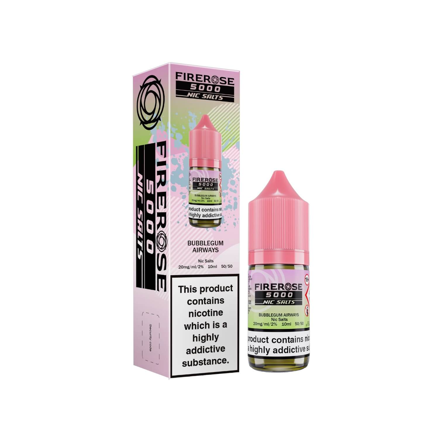 The Firerose 5000 vape juices are available in 10mg and 20mg nicotine strengths, with a 50/50 VG/PG ratio, and come in 10ml TPD-compliant bottles. These nic salts are best paired with Vape Starter Kits (MTL) and Pod Kits. Such devices are designed to be easy and cost-efficient for those moving away from disposables.