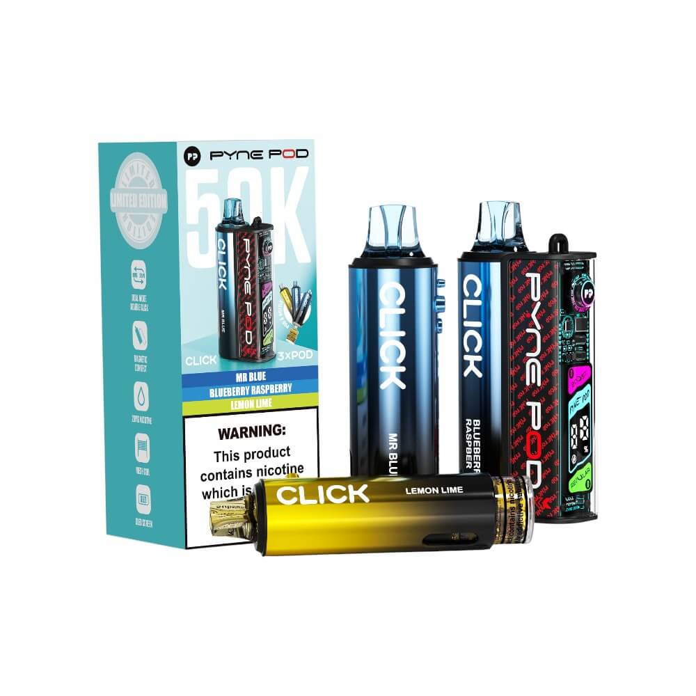 Welcome to the future of vaping with the Pyne Pod Click 50K, the ultimate device designed to deliver massive flavour and next-level convenience like never before. Say goodbye to messy refills and complicated setups - Pyne Pod Click 50K blends cutting-edge technology with premium, flavour-packed E-liquid for a seamless, satisfying vape experience that simply Clicks with you.