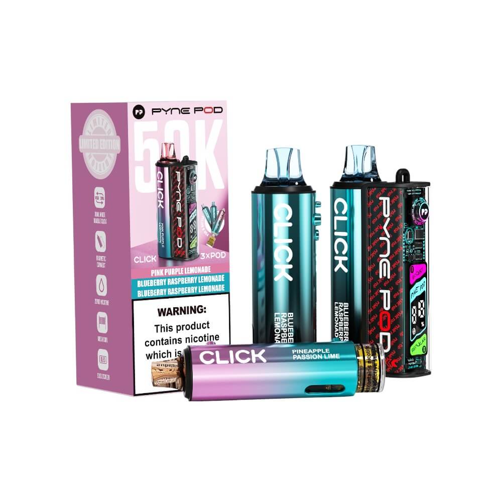 Welcome to the future of vaping with the Pyne Pod Click 50K, the ultimate device designed to deliver massive flavour and next-level convenience like never before. Say goodbye to messy refills and complicated setups - Pyne Pod Click 50K blends cutting-edge technology with premium, flavour-packed E-liquid for a seamless, satisfying vape experience that simply Clicks with you.